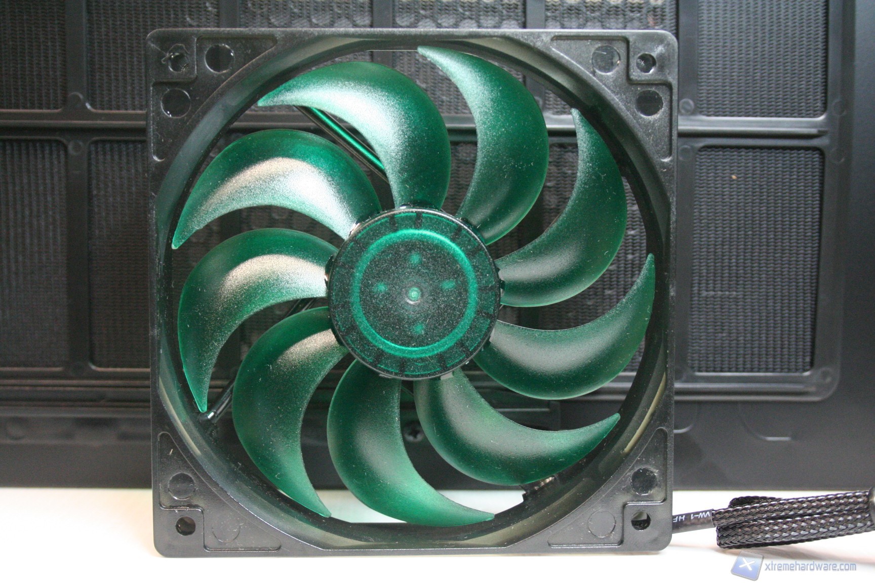 Il sistema di ventilazione potrà essere customizzato a piacimento: 8 le ventole installabili: due nel frontale nei cage degli hard disk, due frontalmente preinstallate, una inferiore, una posteriore e due superiori. Purtroppo la compatibilità è generalmente limitata a ventole da 120mm di diametro ma rimandiamo alla tabella nei primi capitoli. La pulizia della griglia frontale è complicata. Il rumore generato dalle ventole è basso quindi non c’è nessun problema. Vi mostriamo alcune fotografie:
