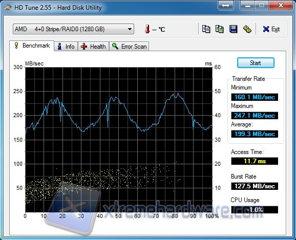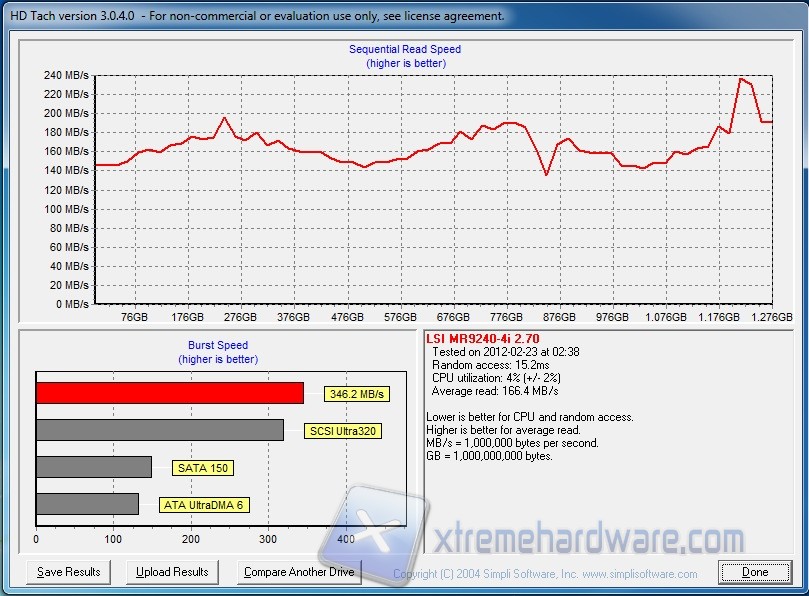 HD Tach è un programma ormai poco usato data la sua parziale negligenza verso i sistemi operativi di ultima generazione, nonostante ciò si dimostra ancora utile per il nostro scopo, ovvero quello di determinare la velocità in lettura sequenziale della nostra configurazione.